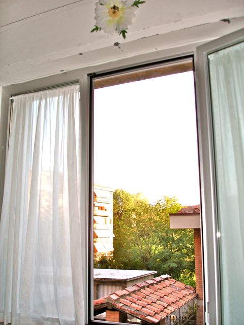 A room with a view! (This was funny, because the we were supposed to be two floors below ground level, and still we were elevated.) Though the room was stifling hot during the day, we got the coolest breeze at night. I loved the multitude of sounds floating in at different set times of the day: a real rooster wake-up call every morning, a master pianist at work in the afternoon, and a bass opera singer stretching his vocal cords in the evening… All made it so… Siena.