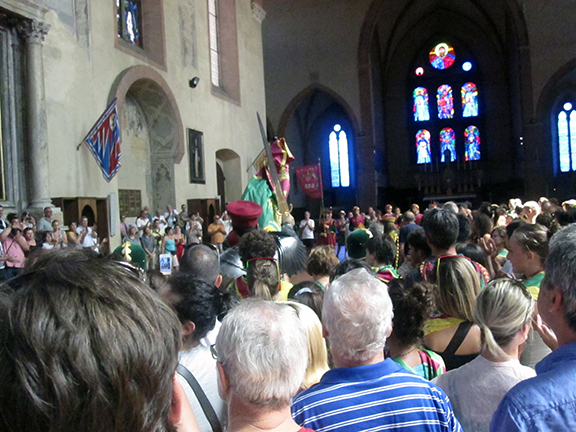 We started the day watching the blessing of the horse for the dragon contrada (since it was closest to the dorm). First there was a parade of people from the center into the church then back outside to bless the horse! (I thought that they were going to bring the horse into the church but that didn’t happen)
