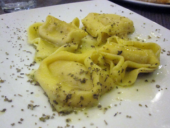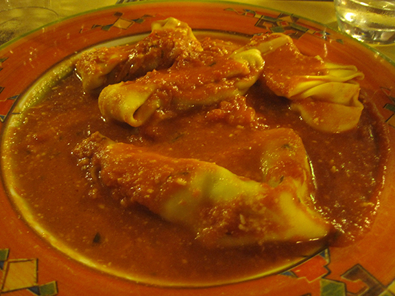 Tortelli di melanzane al pomodoro e pecorino di Fossa (Eggplant tortelli of aubergine, tomatoes and fossa cheese)