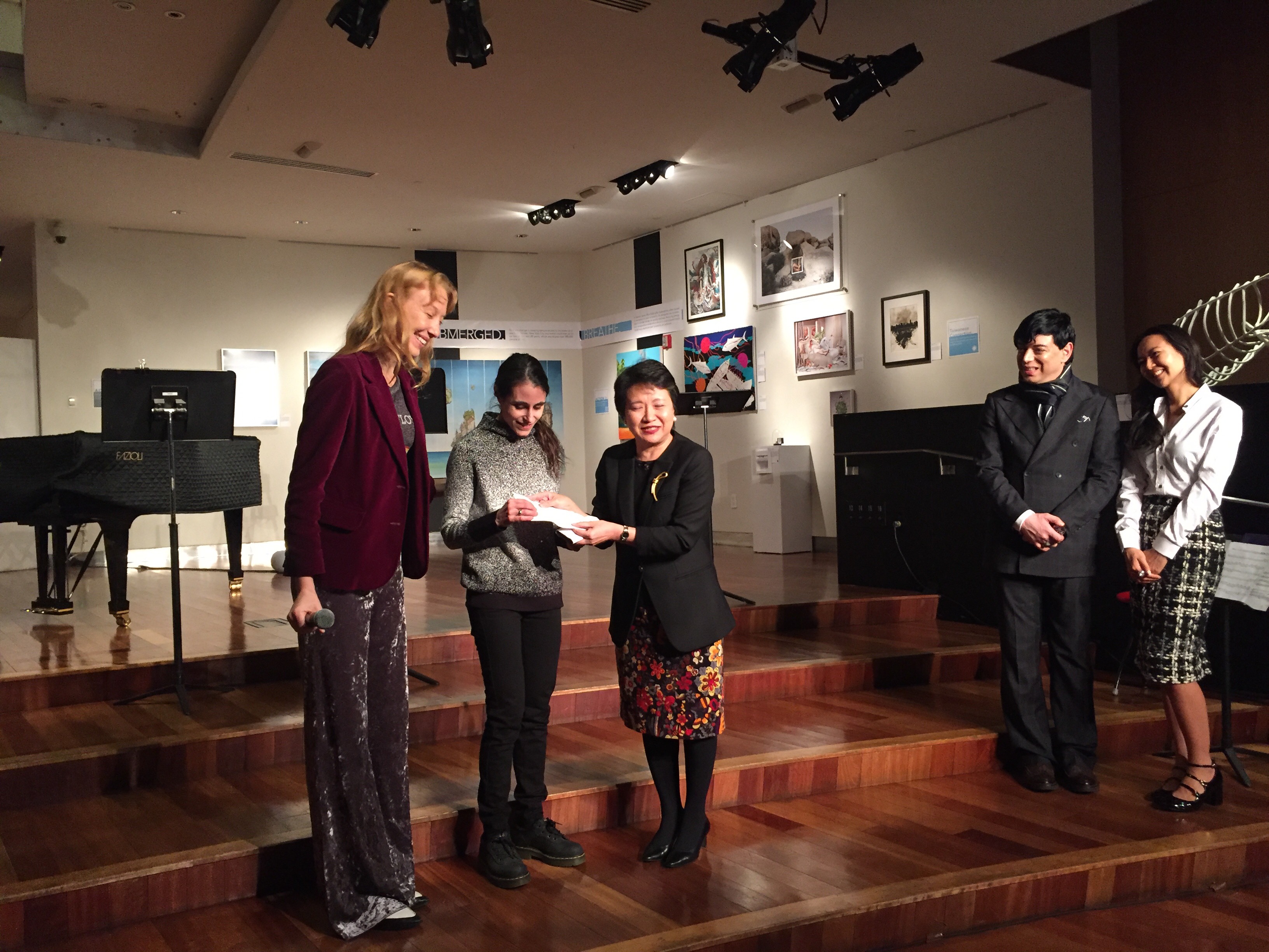The Creative Climate Award reception showcased a total of 37 climate change inspired artworks ranging from paintings, performance art, films, music, theater pieces to paintings. An article written by Bill McKibben, “What the Warming World Needs Now Is Art, Sweet Art” challenged the notion that scientific facts and intellectual knowledge about climate change was enough. He argued that we must incorporate our imagination’s in order to bring forth a signigicant change and understanding involving climate change. Thus the Creative Climate Award was created in order to give artists a platform to showcase climate change in a creative and innovative fashion.