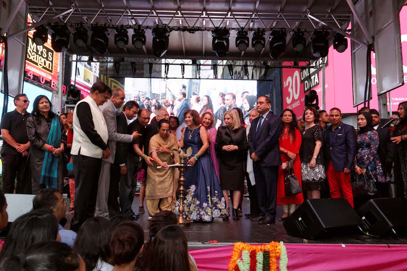 “The Light-Up Times Square Concert” that commenced from 6 PM following the Diya Lighting Ceremony on stage and on the tallest screens of Times Square was attended by the glitterati and the dignitaries such as the Consul General of India Mr. Sandeep Chakravorty, Congresswoman Carolyn Maloney, Borough President Gale A. Brewer, representative from Governor Cuomo Office, representative from NYC Comptroller office, District Leader Ms. Neeta Jain and others.