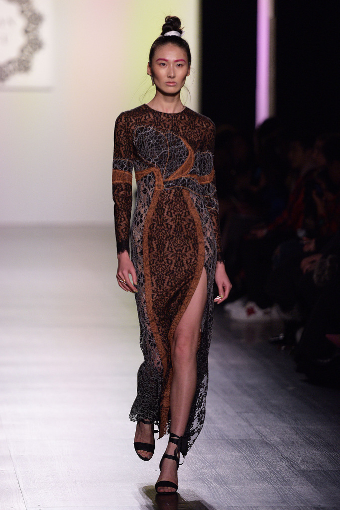 The room in which Lan Yu presented her newest collection was predisposed for luxury. While most of the rooms at 558 Skylight Clarkson Square are stark white, this room was charcoal black, from floor to ceiling, adding an element of intensity and glamour.