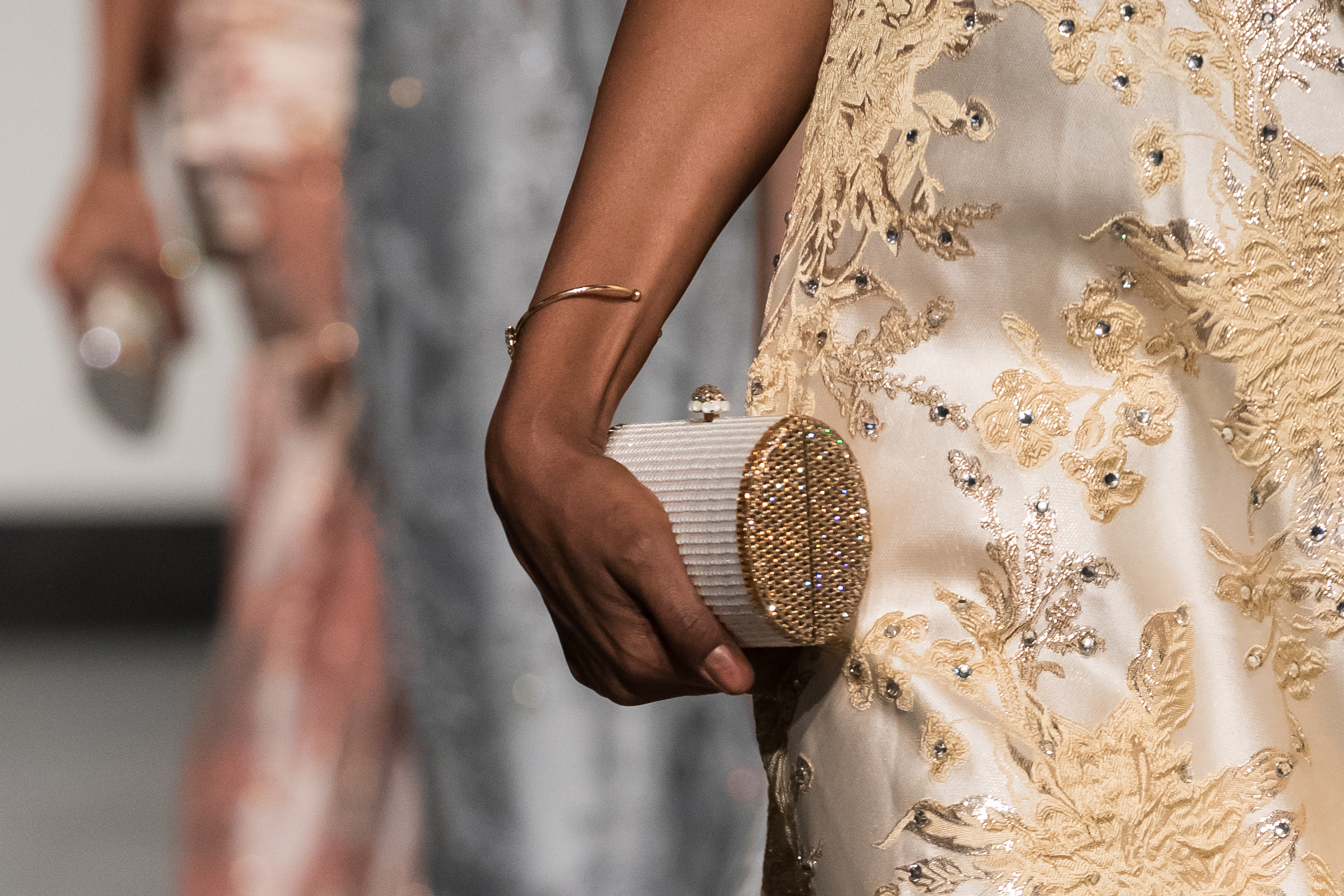 Wendy Chen the founder and designer of her eponymous jewelry and accessories company. Wendy Chen lit up the runway with her accessory line, a venture she really began as a side hustle to her day job. Having started as an interior designer, she only took up designing handbags and jewelry as a hobby, but they were so well received so well, that it only made sense to convert that hobby into a something more professional. Since Wendy only delivers product for private orders, you know the product is unique and one of a kind. She tries to incorporate her Taiwanese culture into her designs, and really likes to collaborate with other emerging designers.