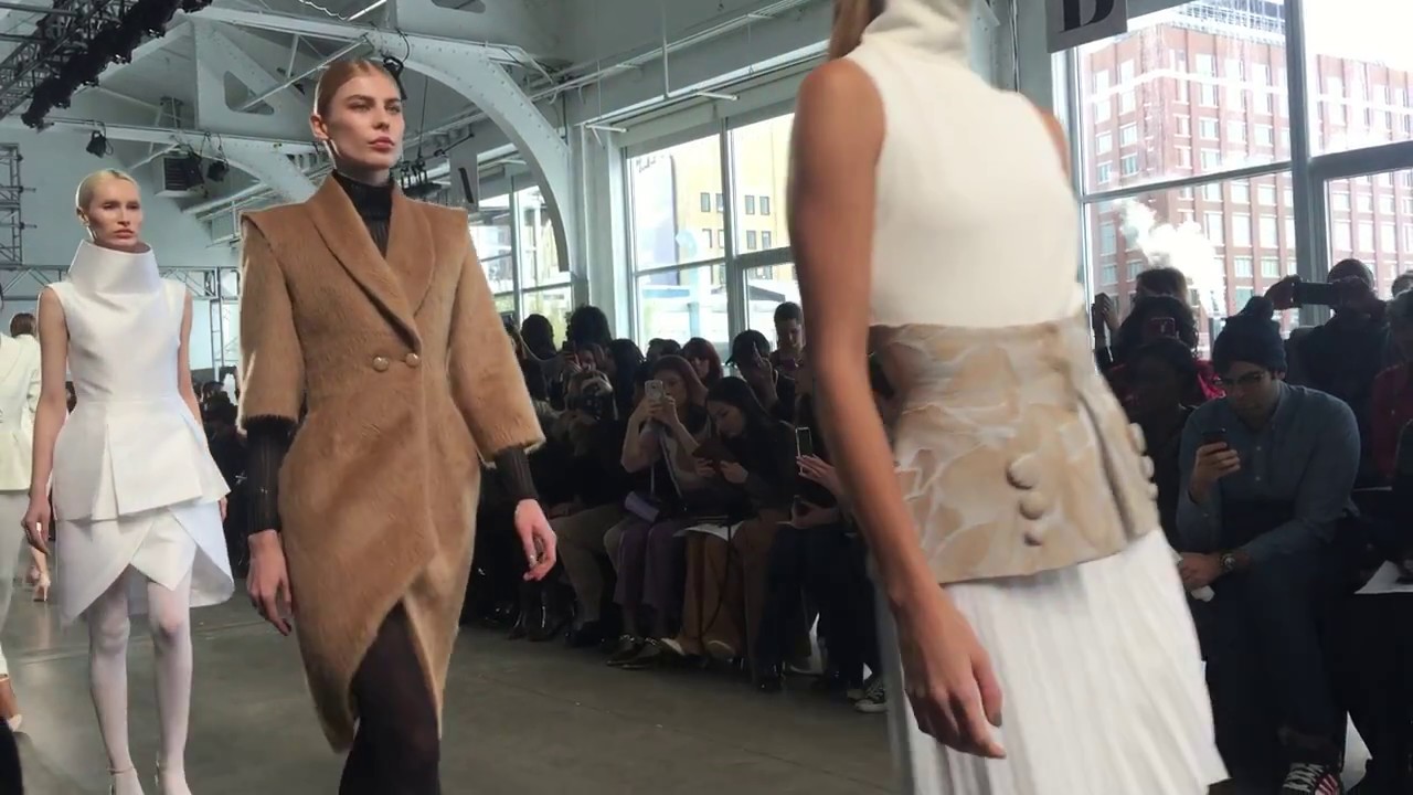 Some of my favorites include an ivory futuristic kimono with classic pencil skirt. The asymmetric cashmere coat in camel and sea foam blue was another favorite. This was a unique, lovely, and wearable collection and I look forward to seeing more of Denibi’s work.
