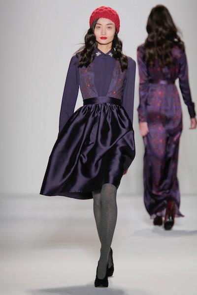 A small island kingdom in the Arabian Gulf was the starting point for the Fall/Winter 2013 collection, with the natural flora and fauna of the designer’s homeland playing an integral role. In particular, inspiration was drawn from the migration patterns of visiting birds to the archipelago throughout the year. This fleeting journey reflects the transient culture of the country’s population, and the Fall/Winter 2013 woman, with a strong desire to travel, this evanescent lifestyle takes her around the world. Continuing the trompe l’oeil elements from the Pre-Fall collection, the op art movement influenced by Bridget Riley and Josef Albers can be identified in more than one of the designers’ prints.