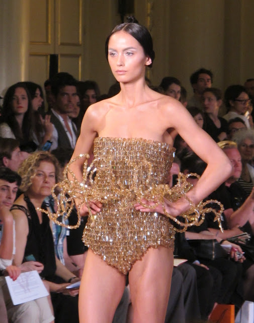 This is a tad late, but I attended Dutch designer, Iris Van Herpen ‘s Haute Couture Show in Paris. As a first time attendee of Paris couture shows, Van Herpen was an excellent way to start. Known for her showstopping pieces, the collection was fantastic and otherworldly, with unexpected textures (think crystal, metal, rubber) and unusual shapes and silhouettes (don’t have to words to describe them).