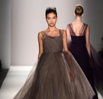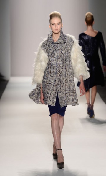 Soft flowing dresses and fur accents were key to Son Jung Wan’s new collection. While an occasional full-length evening dress did appear on the runway, the designer’s vision was strongest in her sportswear looks. The Rex fur collar on the wrap jackets throughout the line created a powerful outwear piece perfect for a cold winter evening.