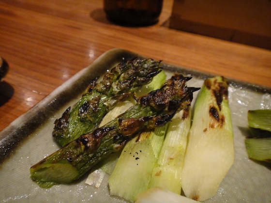 There are plenty of tables, but Inakaya keeps true to the original restaurant with seating around the grill. Three chefs kneel behind the counter, baskets of fresh vegetables and fish resting in ice in front of them. Just as in the old days, they hand customers beer and grilled dishes on long wooden paddles, making announcements in old Japanese.
